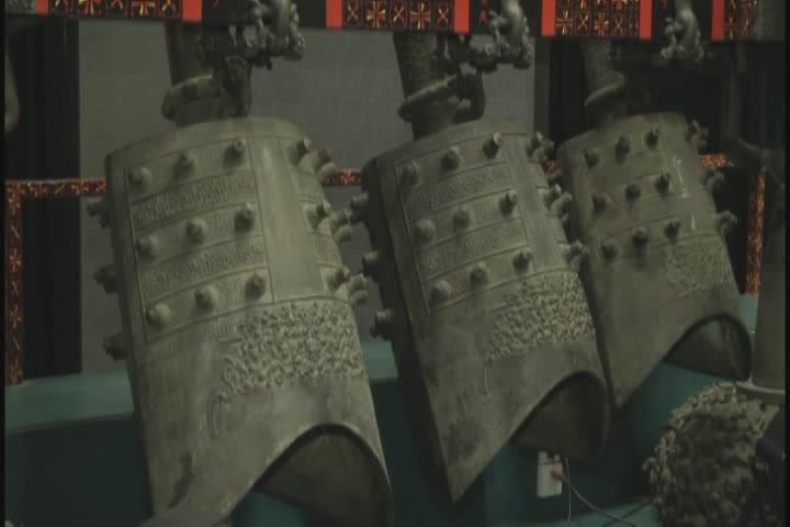 【采访】随州博物馆馆长 黄建勋:原编钟出土了三十多年了,但我们从不断的研究中发现,这个钟架上面有很多历史上遗留下来改造的痕迹,比如说,上面有个孔挂钟的,后来,由五个变成七个,再把原来的孔用木头堵起来了,又重新在旁边凿了一个眼,这样来说它就是在不断地改造,不断地更新,才形成了这么一套编钟,一直到曾侯乙去世的时候,下葬才正式定格为65件编钟,如果曾侯乙更晚一点去世,或者说这套编钟不下葬的话,我相信随着编钟的不断使用,不断的研究它还会有变化,可能还会不断更新,对。