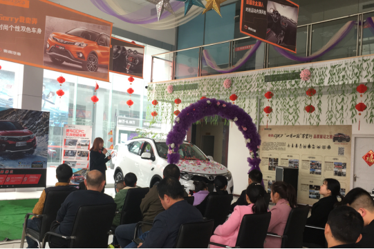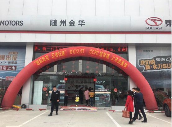 春暖花开,阳光明媚。3月11日下午3:00,小编有幸受随州金华东南4s店邀请参加东南DX7 2.0T CCPC冠军版上市品鉴会。活动现场气球五彩缤纷,鲜花、糕点、礼品,充满着浓浓的派对喜庆气氛。东南汽车4s店的新老客户、媒体记者朋友齐聚一堂,高朋满座。现场丰富的活动也让各位来宾走近东南DX7,感受东南DX7冠军版的爆表颜值与豪华配置,接下来小编就带大家感受下活动现场的气氛吧!