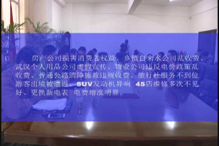 随后,物价、旅游、食药监、质监也介绍了各自部门的举报投诉情况,并公布了典型案例。包括房产公司损害消费者权益、乡镇自来水公司乱收费、武汉个人用品公司虚假宣传、物业公司违反电价政策乱收费、普通公路清障施救违规收费、旅行社服务不到位 游客出境被遣返、SUV发动机异响 4S店维修多次不见好、更换新电表 电费增涨明显等八起案例。