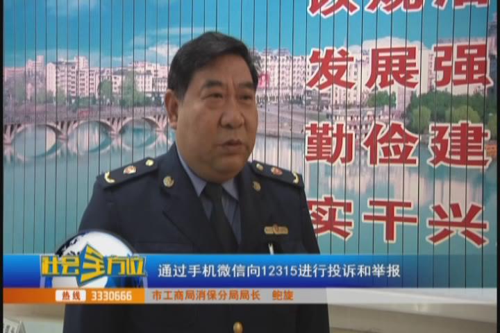 (采访:市工商局消保分局局长 鲍旋)当您的合法权益遭受侵害时,当您购买了假冒伪劣商品时,请及时拨打12315热线电话,同时国家工商行政管理总局今年315正式开通12315互联网平台,大家也可以通过互联网,通过手机微信向12315进行投诉和举报。