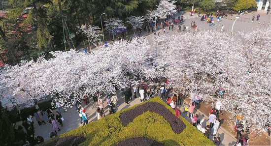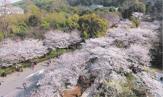 图为:高空俯瞰,武大樱花美景如诗如画(记者邹斌摄)