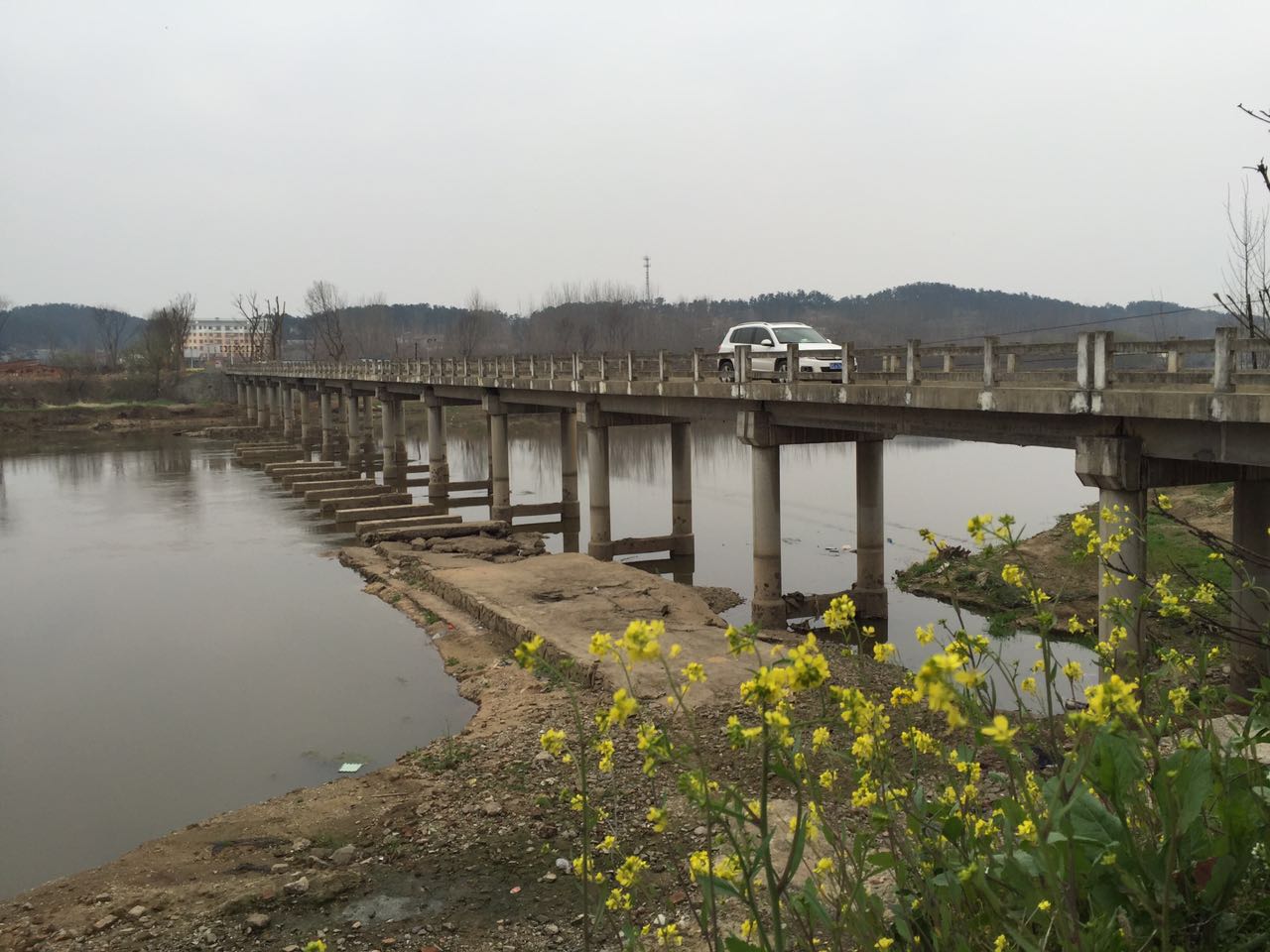 近期,市政处巡查时发现,该桥梁大量栏杆混凝土破损、露筋、错位,南侧第三块梁板沉降3公分并有大量裂缝,存在较大的安全隐患。