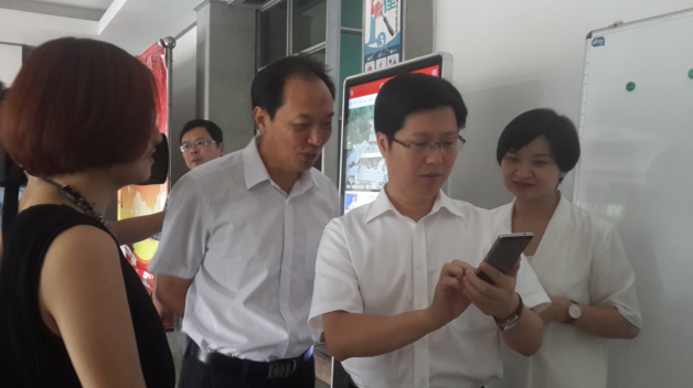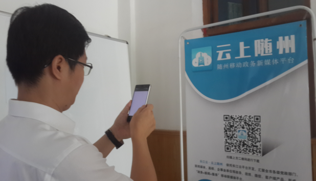 郄英才通过“云上随州”电子屏演示,了解了“长江云•云上随州”的新闻、政务、服务三大板块的功能。