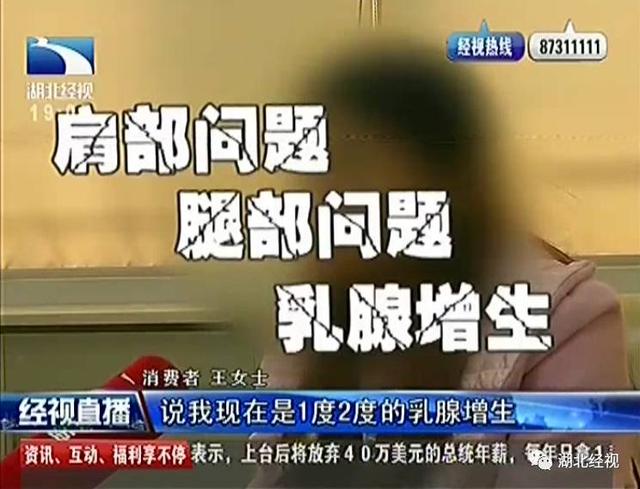 工作人员告诉王女士,不仅她的肩颈是歪的,腿部还有静脉曲张,如果不护理就会像老人一样,会突出来。而且有1度2度的乳腺增生,如果不排出来就会变三度。