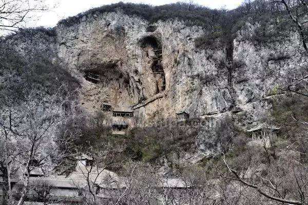 亮点:使用天然岩溶地貌,奇妙地把古刹镶嵌在山崖上的溶洞缝隙中,可与恒山悬空寺比美。