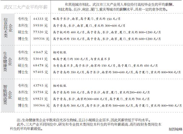 昨日,武汉市人才服务中心对外发布《2016年度武汉市信息技术、生命健康和智能制造产业高校毕业生薪酬调研报告》。这是武汉首度发布三大战略新兴产业的毕业生薪酬报告,旨在为2017年度高校毕业生和相关企业提供参考。