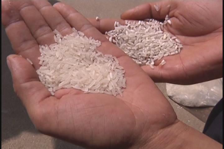 在经过了收割机现场收割、用卷尺测量面积、去除秕谷以后,再将谷脱壳去皮,最原始的糙米就产生了。大米收购公司有关负责人将“隆两优黄莉占”的大米与其它大米现场进行了对比。