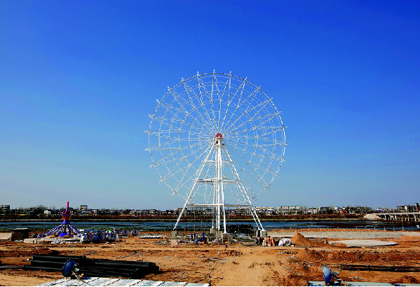 位于随州高新区淅河镇的府河欢乐世界项目正在抓紧建设中,府河岸边已经竖起了高大的摩天轮。