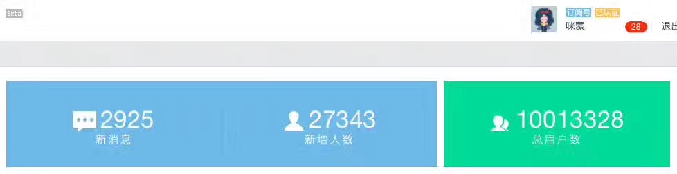 另 一方面,自媒体内容的影响范围可以如此之广,相比之下Papi酱、罗辑思维等相对读者圈层还是很明显的,比如papi酱主要是年轻女性后者主要是新中产阶 级和知识阶层,而咪蒙的话题却能够影响到从阔太太到女实习生,更多的人是听闻咪蒙名字特意搜索并加关注的,从流出的咪蒙后台截图来看,在粉丝总数破万的当 日,新增27343人关注。