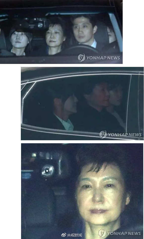 逮捕令被签发大约两个小时后,朴槿惠离开检方指定地点,在两名女性调查人员的押送下,被押往拘留所。