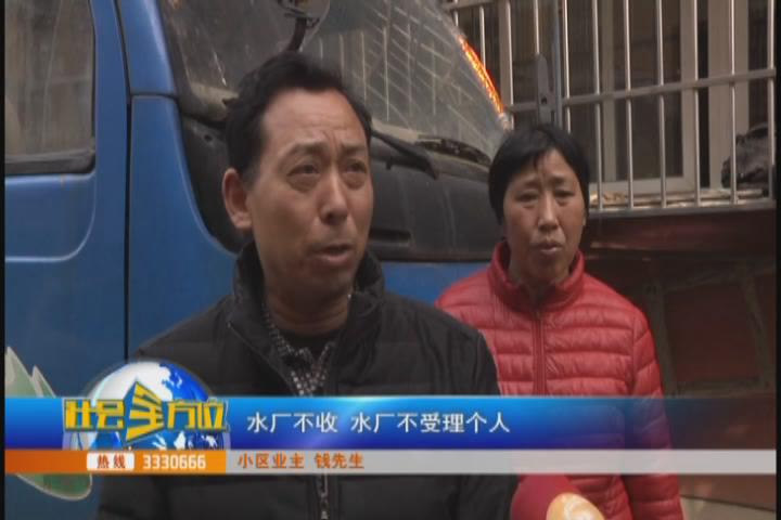 【采访】小区业主 钱先生:自己去交,他们不收,水厂不收,水厂不受理个人,他要对总户,说我们小区只开了一个户的表,所以他只认那一个,不认别人。