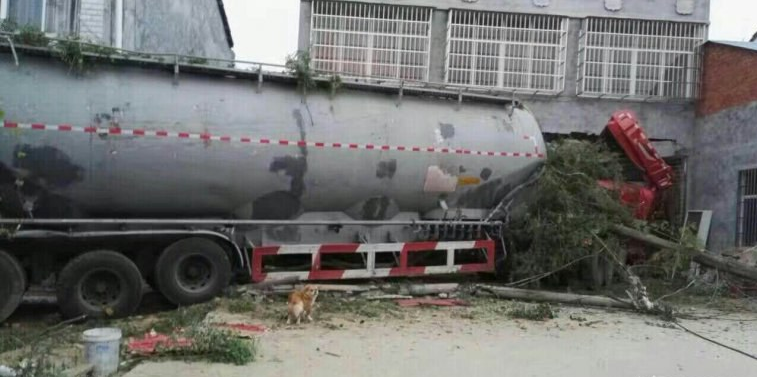 网友爆料:24日凌晨三点左右,随县厉封公路沙城村段一辆装满油的大型油罐车因为刹车失灵冲向路边,在把一排树都撞断后,直接撞在了居民家大门上。该事故造成油罐车上人员一死两伤,被撞居民家大门基本损毁,两户居民财产损坏严重。
