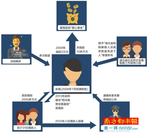 南都讯见习记者彭彬发自北京 近日,多位借款人向南都报料称,湖北随州刑满释放男子余某以“成立‘阳光教育安置基地’需要资金周转”为名,涉诈骗投资者逾2000万元。借款人称,如果不是随州当地媒体曾多次对余某事迹进行过报道,且政府有关部门对余某进行过表彰,他们绝不会借钱给余某。
