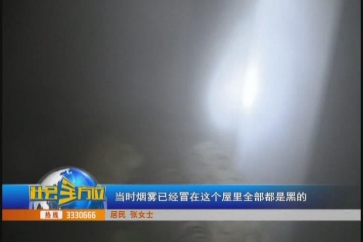 【采访】居民 张女士:我在半睡半醒的时候,那个门又响,就像是用铁棒敲打门的声音,我就想这怎么还有小偷,心里就很害怕,然后等一会这个门,突然地我就看到窗子旁就开始冒火,我说坏了,发火了,我就跑到阳台上去,我就叫,快点救命,发火了。门全部烧燃了,然后火就往屋里面飘,那个烟雾呛的喉咙里说不出话。我就跑到阳台外面的防护窗上,我就把头伸在外面,把窗子都关上,那个味道稍微好一点,能克服。当时烟雾已经冒在这个屋里全部都是黑的,喉咙喘不过气,要窒息,我就赶快到这个阳台上来,我就把这个窗子打开,把这个窗子打开之后我就跳在这个上面,站在这个位置,扒着这个,把头伸向外面,再把窗户关上,烟雾还是从这个窗子里面,朝外面滚滚而来,浓烟还是很严重,我就叫,左右那边楼房的人都起来了,五点多一点,都起来了都帮忙喊救命,救火。