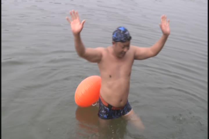 【采访】市民 李同富:我们都是从三九天游泳,下雪结冰都游,我游了二十年了,从55岁,我原来在部队工作,55岁退休,退休之后就开始冬泳,一直坚持到现在,98年退休到现在。