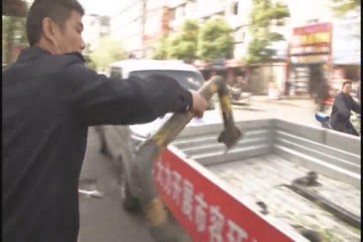 经过前一段时间,我们一个通知,在各市督促之后,有大部分的商户都自觉拆除了,门前的地桩地锁以及障碍物,我们这次主要是针对没有自行拆除的商户进行了强拆。