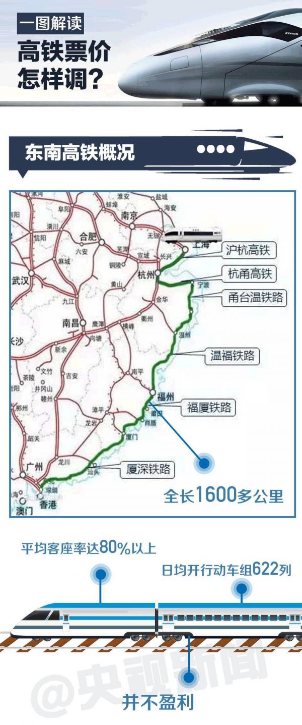 另外,调价也不完全等同于涨价。此次东南沿海高铁调价,执行票价是根据各车次的客流状况呈现差异化,有涨有降。