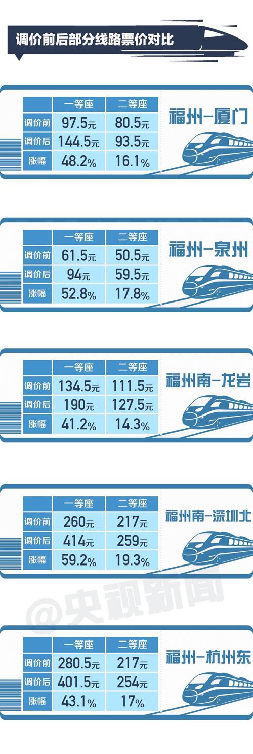 这次调价是中国高铁第一次跨省调价。具体怎么调?会涨价吗?对百姓出行有何影响?来看看从福州(福州南)始发到这些地方的票价涨了多少。