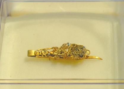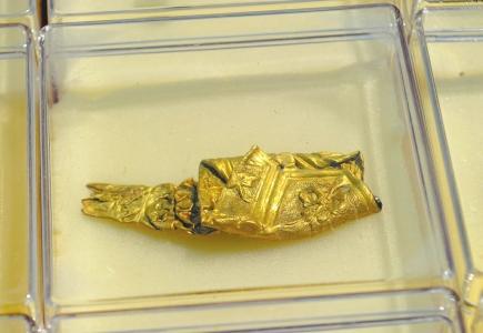 此次出水的大量的金首饰应有尽有,镶嵌玉石耳环、发簪、项链、手镯、镶嵌宝石戒指等,不一而足。不少文物颇具生活气息,比如金纽扣、铜镜、铜秤砣等。省文物考古研究院水下考古中心主任刘志岩称,这些都应该是富有家庭所有,沉于此,很有可能就是张献忠劫掠而来。而这些大量金饰的发现,也体现了他对货币的渴求。此外,此次考古还发现了一块残金器,有切割过的痕迹,目前,考古人员正在拼合修复之中。刘志岩说,这有可能是张献忠从藩王府抢来的。