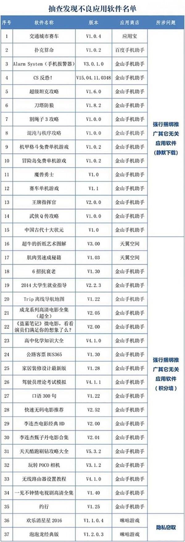 附:消协报告的37款不良应用软件