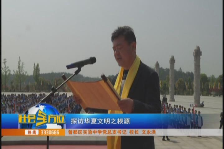 【同期声】随州曾都区实验中学校长 文永洪 颂文:岁在丁酉,春和景明。我实中师生千余,齐聚烈山脚下,追忆始祖神农之功德,叩首炎帝殿前,探访华夏文明之根源。