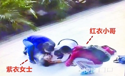 李女士撕心裂肺的呼救声,引来不少人围观。图书馆工作人员、保安闻讯纷纷赶到,但由于缺乏专业救助知识,大家都束手无策。危急时刻,一穿紫色衣服的女子突然冲过来,大喊“孩子卡住了,我是儿科医生,快把孩子给我!”女子一把将自己的包扔在地上,接过孩子立即开始施救。
