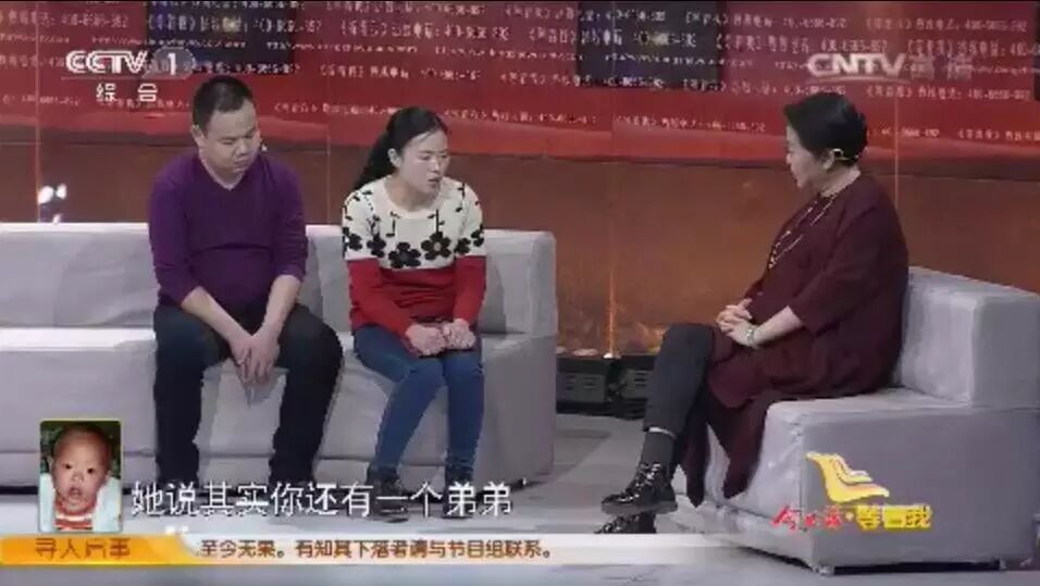 昨晚8时,吴家雨带着丈夫,在中央电视台《等着我》栏目组,见到了被拐27年的弟弟吴家燚。