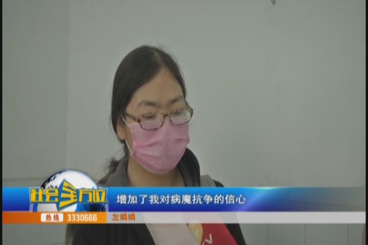 上星期本栏目报道了广水农村女孩左娟娟罹患白血病,急需进行骨髓移植手术,高昂的手术费却成大难题。左娟娟的母校随州一中在得知情况后,召集师生为左娟娟募捐,随后,学校将师生募集的5.2万余元爱心捐款送到她的手中,鼓励她坚持治疗、早日康复。