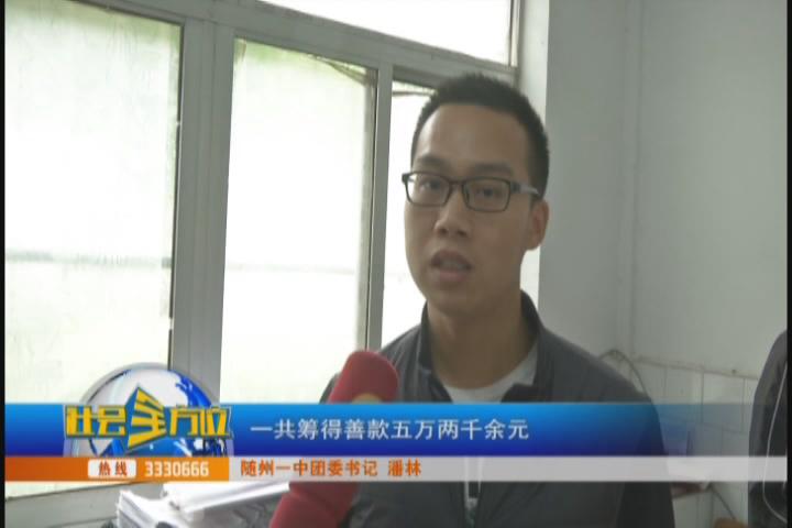 【采访】随州一中团委书记 潘林:利用各种途径,比如说开学生会议,在教师群里推广,在学生家长群里也还利用各种途径做了宣传推广,一共筹得善款五万两千余元,在这里特别说明的是,我们有些同学家里并不富裕,但是为了帮助我们这位可爱可敬的学姐,从自己的生活费中,省出来一点捐一点,也表达他的一点点爱心。在此,我代表我们学校,衷心的祝愿我们这位校友早日康复。