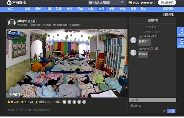 一家幼儿园直播孩子睡觉画面。