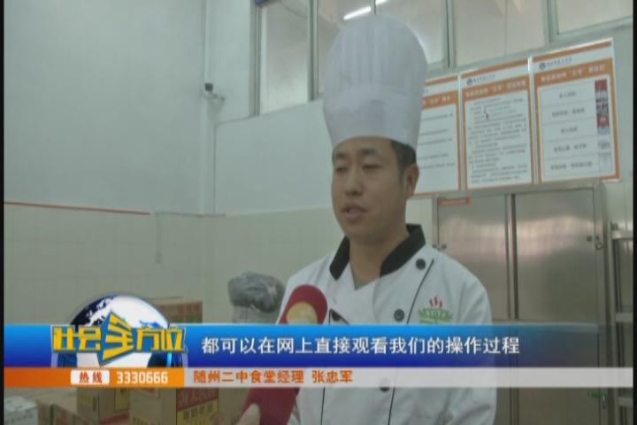 【采访】随州二中食堂经理 张忠军:我们现在所有的操作间加工间还有售卖间,都是监控管理,因为这个监控视频可以通过网上(看到),监管部门、学生家长都可以在网上直接观看我们的操作过程。