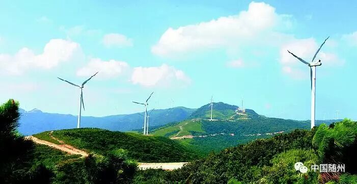 图为桐柏山上的风力发电场