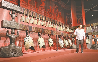 “宁波的简称是甬,甬就是钟,甬钟是编钟的一种。因此,本次展览促进了两个城市之间的文化交流。”展览主办方之一、随州市华夏博物馆副馆长胡久洲首先介绍了36件曾国编钟,出自战国晚期擂鼓墩2号墓的编钟,比曾侯乙编钟时代要晚一点,是世界音乐考古史上的又一重大发现,并为研究古代礼乐制度以及青铜文化提供了宝贵的实物资料。全套编钟为战国时期曾侯祭祀或宴飨时使用的编钟,皆为甬钟。经专家测试,每件钟都为一钟双音,至今仍可演奏古今中外的乐曲,被称之为曾侯乙编钟的“姊妹钟”。它作为中国的文化使者,曾赴日本、英国等国展出。胡久洲说,编钟不仅有历史价值,还具有很高的科学价值、艺术价值,“唯一能发声、演奏的青铜乐器只有中国有。”