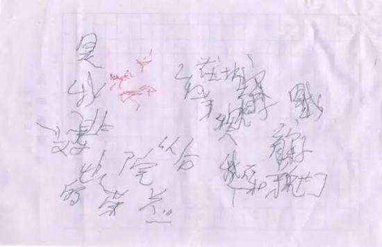 当她接过纸条,看到纸条上面写的字歪东倒西,不连贯,也不通顺。王勇的同事孔令壮仔细辨认后,说:“这张纸条是写给我的。‘给孔令壮说,网上案子别超期。’我知道啥意思了,意思是让我看看在网上(指全国检察机关统一应用系统办案流程)的案子是否超期。”