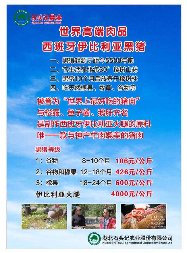 西班牙伊比利亚黑猪虽然好,但是价格却让很多人望尘莫及。很多人就会问了,难道中国没有这么好品质的黑猪吗?其实,黑猪是中国的传统猪种,早在两千年前,中国的黑猪就已出口到古罗马,随州的“石头记伊比橡果源黑猪”就是可以和西班牙伊比利亚黑猪相媲美的中国黑猪。