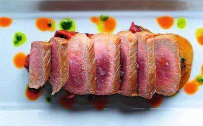 脂肪的分布,是日本和牛A3、A4级,澳洲和牛M8、M9级的雪花状,吃起来肉香、油香兼备;口感类似日本和牛,肉质富于弹性而柔软,完全没有异味,而是久违的猪肉鲜香,并带有独一无二的橡果香。