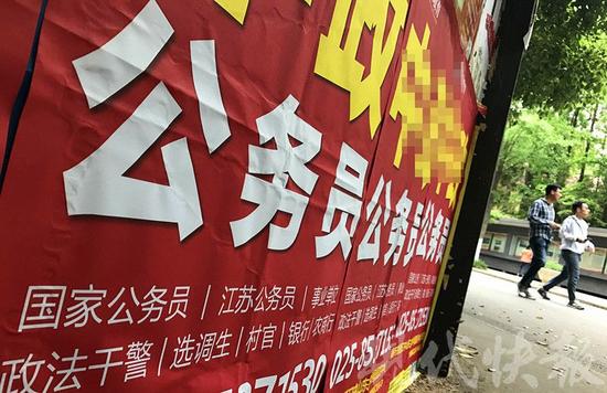 公务员培训机构打出的广告 现代快报记者 赵杰 摄