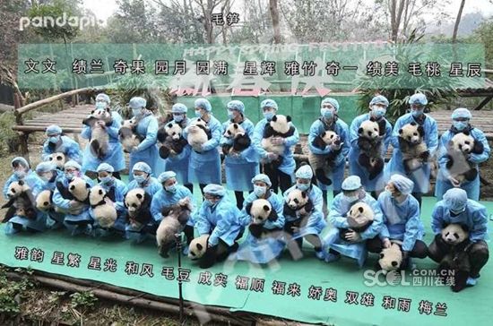 此前毛二(毛笋)在其他熊猫大合影中强行抢镜(见图片顶部)