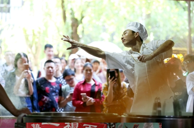 辞职不足两个月,走红网络的拉面小哥田波又回到黄龙溪古镇拉面,舞姿依然妖娆