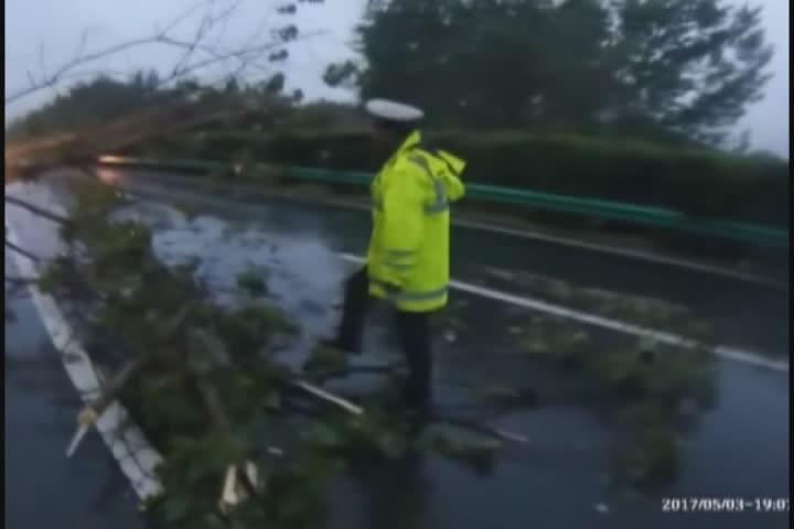 晚上七点左右,路政、养护工作人员到达现场后,对伏倒的树木进行切割、清理,经过约半个小时的雨中奋战,险情被排除,道路恢复畅通,整个过程未发生车辆滞留和交通事故。