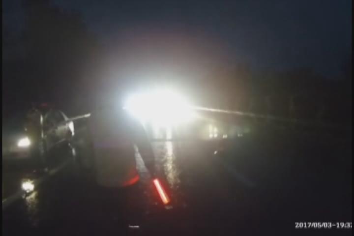 当天晚上六点半左右,高警随州大队民警巡逻至福银高速武汉方向1084KM处,发现一棵大树倒在了高速路面,树枝散落一地,高速公路的行车道及应急停车道临时受阻,仅留下一半的超车道供车辆通行,过往的车辆见此情景,纷纷紧急刹车避让。