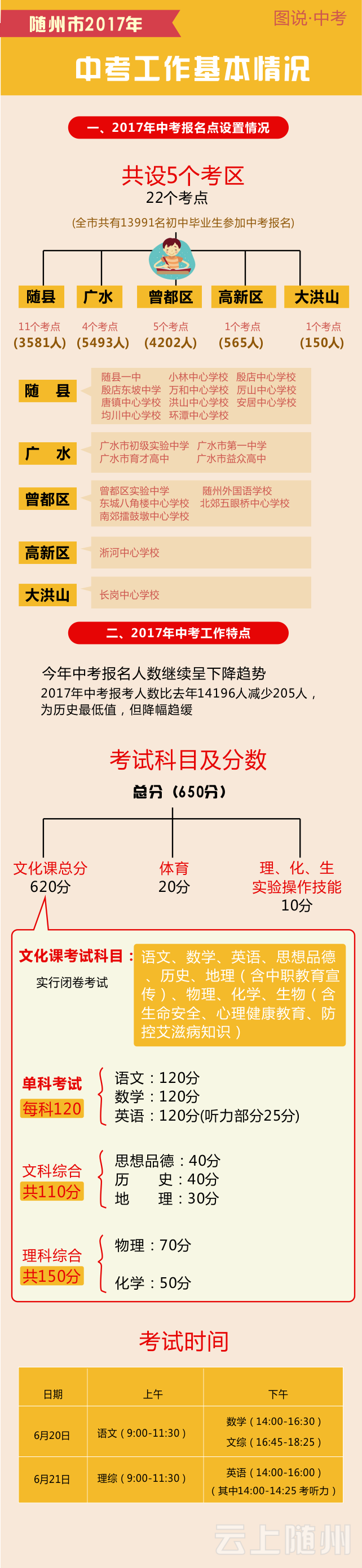 看完了高考,接下来咱们就一起来看下随州市2017年中考基本情况,还是请大家仔细认真阅读,同样,重点也已经给大家列出来了!