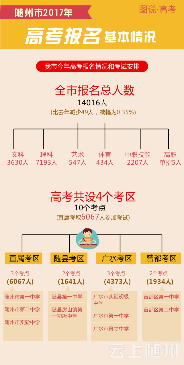 高考是一个多么严肃而又令人敬畏的词,现在距离高考已经不足一个月了,咱们就先来看下随州市2017年高考基本情况,对即将到来的高考有个“全局”把握。重点已经给大家列出来了,大家记得做好笔记哦~