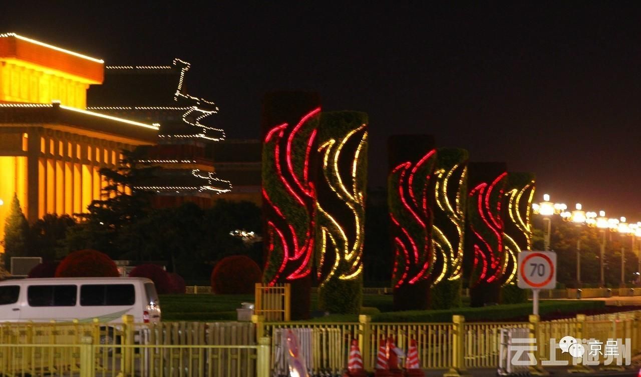 广场上的人民英雄纪念碑和毛主席纪念堂璀璨夺目。