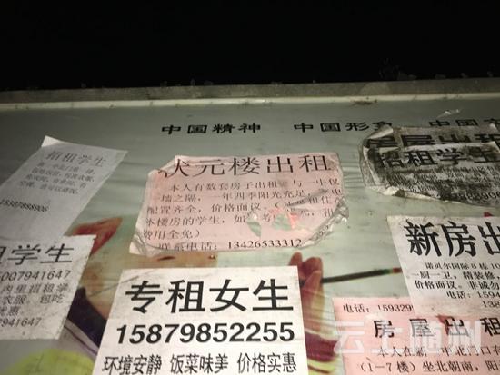 与这片简陋的居民区相对的,是学校南门外的新式小区,有小区大门、围栏,样式规整的高楼间有绿色草坪。尽管“好坏”很大程度上是由房子与学校的相对位置来决定的。比如校门正对面的小区,就是“最好的”,其次是斜对面的。离学校越近,房租价格越高,最贵的一年租金两万多元,在这座人均GDP约3万元的小城里,房东“完全就是躺着赚钱”。