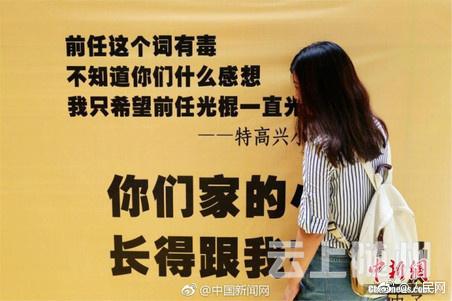“希望你过的没我好”“再见,再也不见”“前任让我新生”“我很好,愿你也好”… 18日浙江宁波某商场内,近百条“致前任”留言贴满了墙壁和地面。这些句子来自网络征集,希望在网络情人节中,引发人们对爱的共鸣。来留言说说,你想对前任说__?