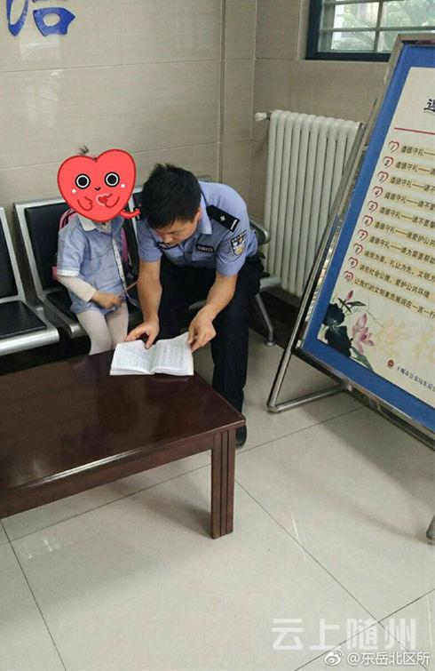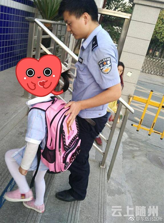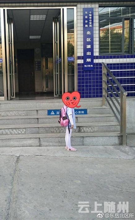 前天下午17时许,十堰市公安局东岳分局北区派出所民警谭警官正在值班,发现门口的台阶旁站着一个小姑娘,她看起来有个六七岁,背着书包。问她什么事,她低下头,抿着嘴巴,一言不发。谭警官问了几次,她才抬起头说道:“警察叔叔,我犯了错误。”