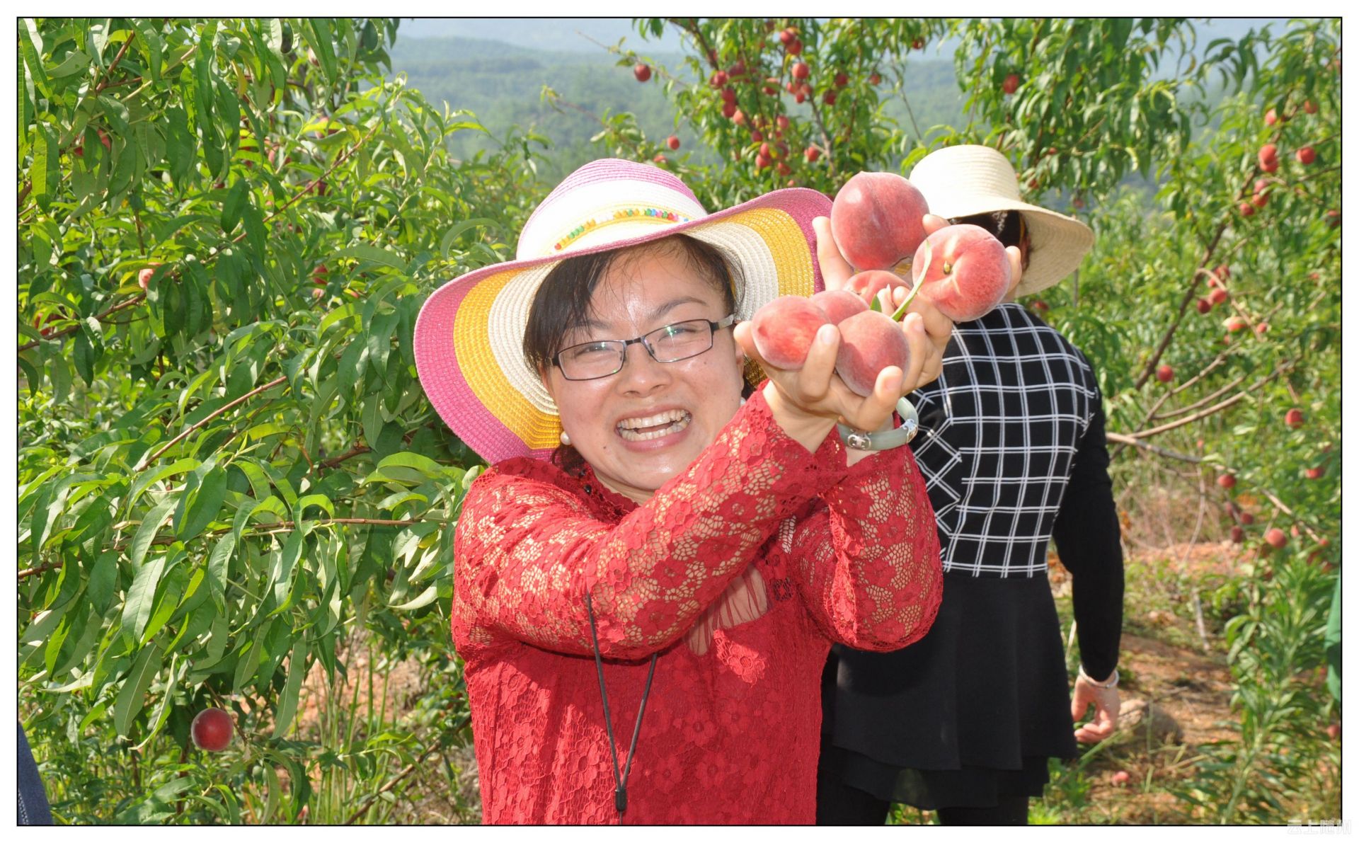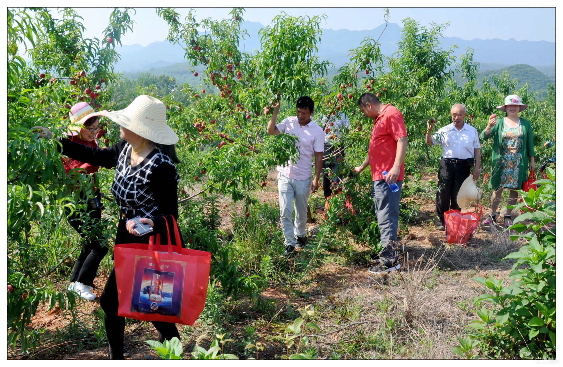 数百亩的桃园里,红艳艳的鲜桃就像挂满的红灯笼,游客们从树上摘下一个个又红又大、品种不一的各类蜜桃,现场品尝新鲜水果的鲜美口感。不管是观赏,还是品尝,果园采摘都充满了乐趣。