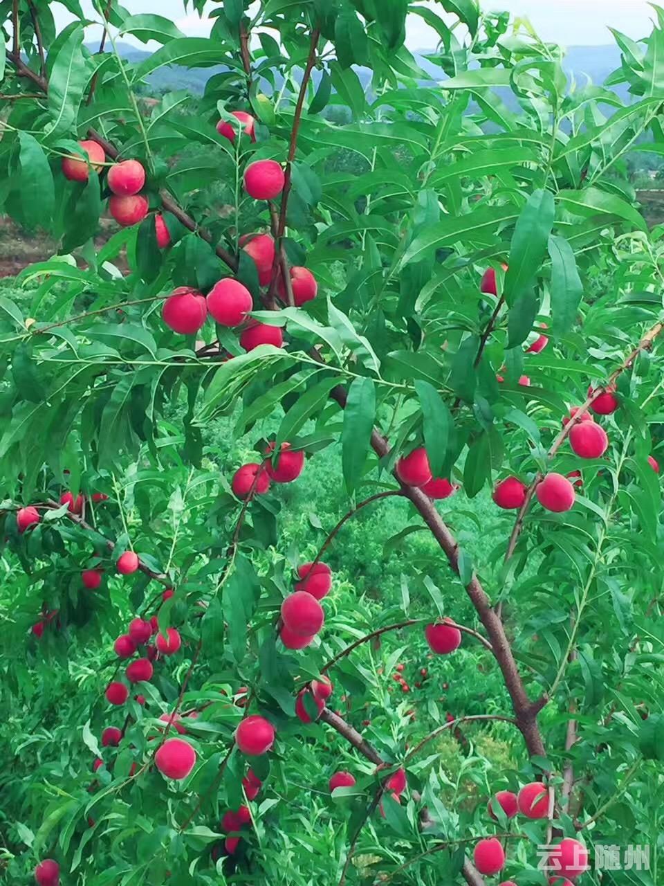 目前,大洪山花果海内桃园基地率先开启采摘模式,成熟的面积已达300余亩。喜欢桃子的人在这里几乎能品尝完桃子的所有品种。从5月到9月,随着各类蜜桃陆续挂果,品尝周期也长达5个月。