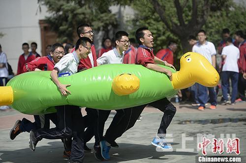 资料图:高三学生参与趣味运动会减压。中新社记者 刘文华 摄